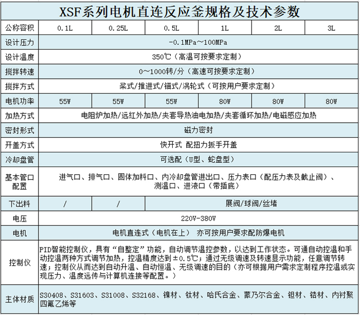 反應(yīng)釜的結(jié)構(gòu)形式、壓力高低、加熱方式、攪拌槳形式可根據(jù)用戶技術(shù)條件需要進行設(shè)計制造,選用材料可根據(jù)用戶反映介質(zhì)需要,制造各種不銹鋼、鈦、鎳以及碳鋼反應(yīng)釜、反應(yīng)塔、反應(yīng)罐、冷凝器、換熱器、儲罐等以及非標準化工設(shè)備。可根據(jù)用戶技術(shù)條件生產(chǎn)磁力偶合器與反應(yīng)容器配套,其大小可以任配。